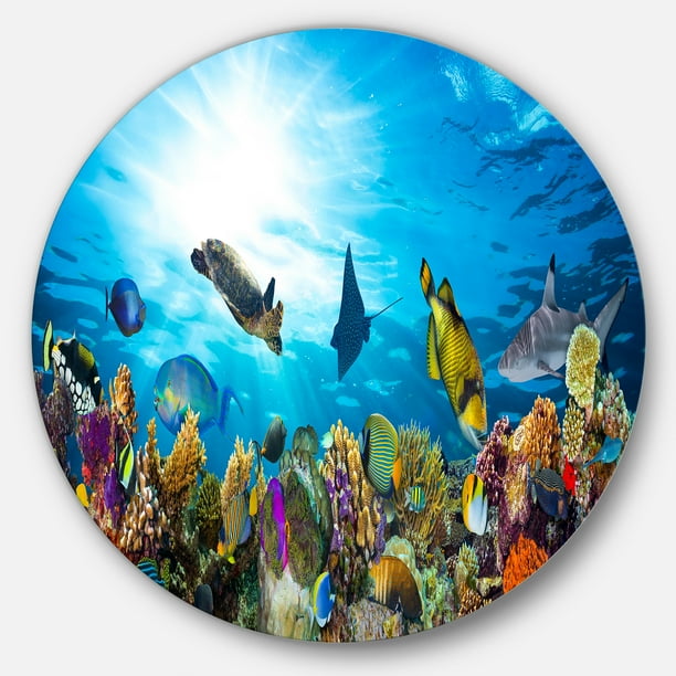 Designart Colorful Coral Reef With Fishes Disc Seascape Circle Metal Wall Art Walmart Com